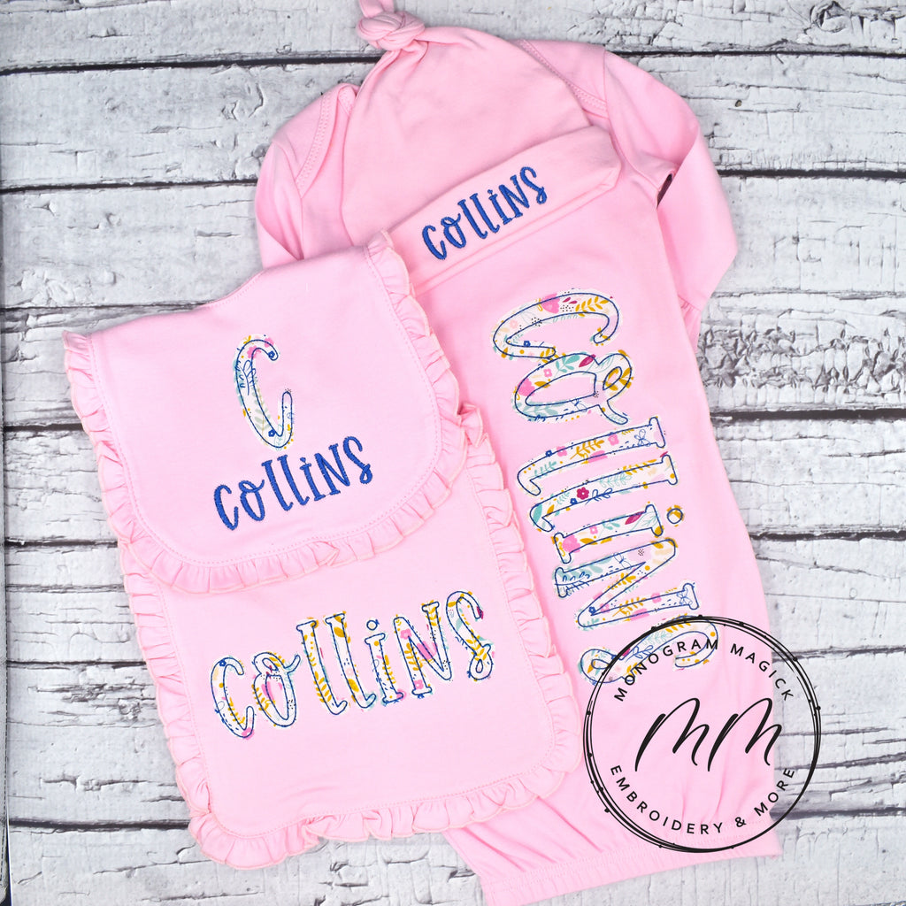 Gown*Hat*Bib*Burp - $73.85 USD