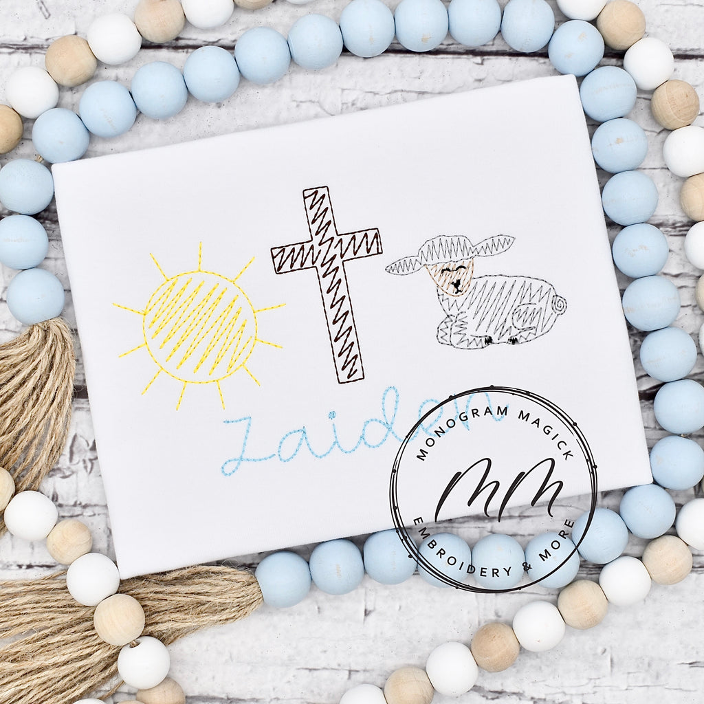 Sun, Cross, Lamb Sketch Shirt
